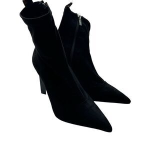 The bootie features a slip-on closure type and a pointed toe, making it easy to wear and style with a variety of outfits.