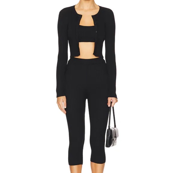 Revolve set in perfect condition, worn twice! Brand: all the ways. This set includes a cropped cardigan, a mini bralette, and capri leggings.