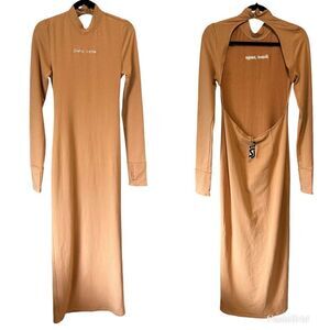 Revolve Shane Justin Nude Brown Tan Backless Cutout Maxi Bodycon Dress