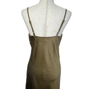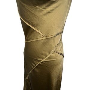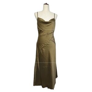 Revolve Sincerely Jules Cowl Strap Satin Dress. Olive Bronze. Size M. #621 NWOT