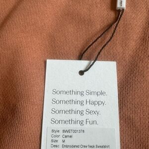 Revolve Something Navy Embroidered Camel Crew Neck Sweater Sweatshirt Size M