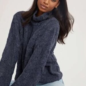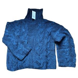 Revolve Something Navy Cableknit Turtleneck Chunky Blue Cable Knit Sweater SZ M