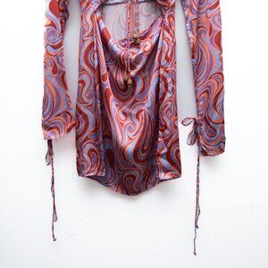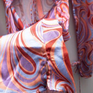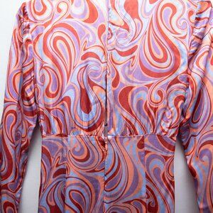 -Bold psychedelic swirl patterns in complimenting colors shine bright through out this dress!