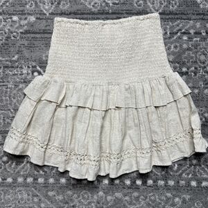 Revolve Spell & The Gypsy Lola Ruched Mini Skirt Small Tiered Neutral Shimmer