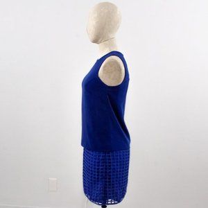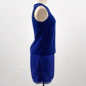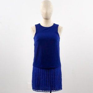 Stylestalker mid-weight cobalt blue mini from Revolve. Straight boxy fit, no pockets. Sleeveless wide strap dress w textured geometric lattice grid overlay - 2-piece set look w layers but 1 piece. Cool 60s mod gogo vibe! NWT.