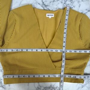 Revolve Superdown Cheyenne Crop Top Mustard Yellow Long Sleeve Large in excellent condition,no flaws. Side zip and surplice neckline
