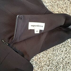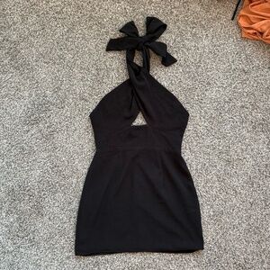 Wore this dress for one gameday and I got so many compliments! It crosses in the front, with a bit of a triangle gap around the bottom of your sternum. I would recommend for girls with a little more bust, as I believe it's more flattering with some underboob. The zipper works, and the hanging straps are still intact. It has some pilling on it, but it's very minimal and unnoticeable from far away.