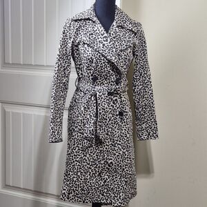 Superdown Revolve Double Breasted Trench Coat XXS Animal Print Belted Jacket w/Pockets 100% Cotton.