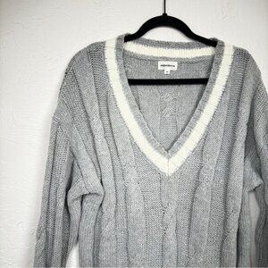 Revolve Superdown Grey Cable Knit Sweater Dress Womens M V Neck Preppy Academia