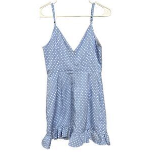 Revolve Superdown Mayra Blue White Polka Dot Ruffle Mini Dress Party Cocktail Si