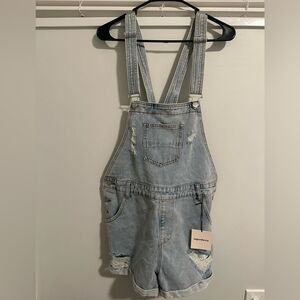 Revolve Superdown Meghan Distressed Short Overalls Shortall Denim Light Wash L summer outdoors cute