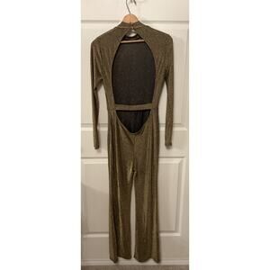 Revolve Superdown Metallic Nissa Open Back Flare Leg Jumpsuit, M