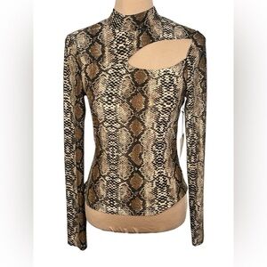Revolve Superdown Polina in Brown Snake Cutout Long Sleeve Top Size Medium NWT