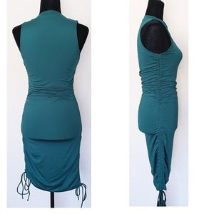 Green dress with ruched sides. Sleeveless design. Perfect for any occasion.