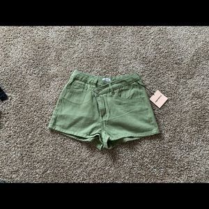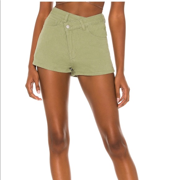 Rylan Asymmetrical Shorts in Green from Revolve.