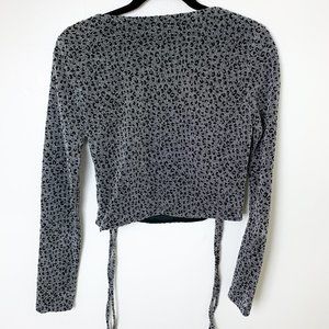 Revolve Superdown Syna Ruched Long Sleeve Wrap Top in Silver Leopard. Size small. Like new condition. Metallic silver and black