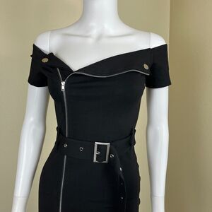 Revolve Superdown Women's Size XS Black Terri Moto Bodycon Mini Dress Rockabilly