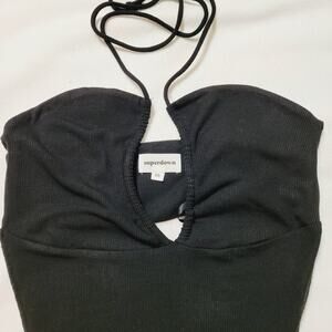 Revolve Superdown black keyhole neck bandana hem neck tie halter top size XS