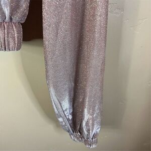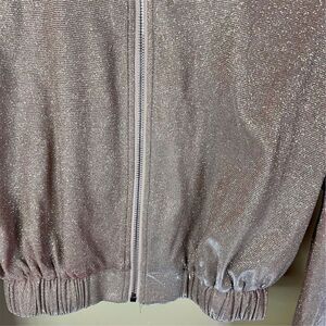 Revolve Superdown Brianna Metallic Jacket in Rose Gold Women's Size Medium. Made from polyester, it has a short length and includes a zip closure, elastic waist, and elastic cuffs, providing a regular fit. It is ideal for casual or party occasions. The item is pre-owned. Great condition with no stains, tears, rips, holes, or pilling. From a smoke-free and perfume-free home. We carefully inspect each item for quality.