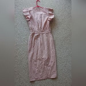 This elegant pink dress features a stylish button-down design and flutter ruffle sleeves, perfect for any occasion.
