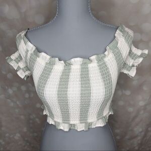 Revolve The Fifth Label Poetic Stripe Smock Top in Sage White Cap Sleeves