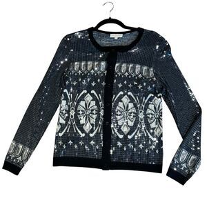 Revolve Tory Burch Black and Silver Sequin Cardigan Sweater Size M