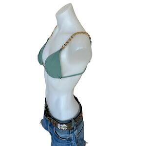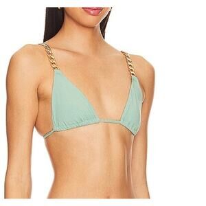 Revolve Triangle Chain Bikini Top Sage Green MEDIUM Bralette String Lovewave $88