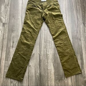 Color: Green Features: Five pocket velvet jeans. Rich olive color. Machine wash. Fabric: 52% Viscose 45% Cotton 2% Elastane