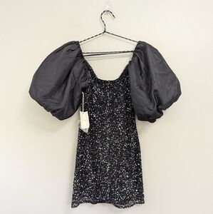 Revolve Tularosa Allison Silver Beaded Sequin Dress with Puff Sleeves Party