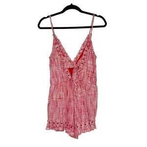 Revolve Tularosa Amelia Romper Wrap Neck Sleeveless Women Bright Red Size Medium