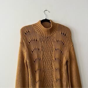 In good preowned condition. Acrylic knit. High neck. Tan color. Sold at Revolve.