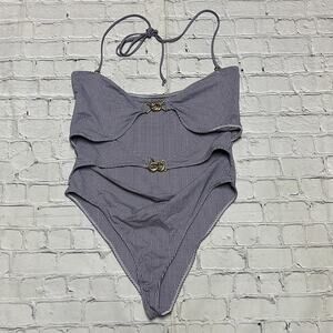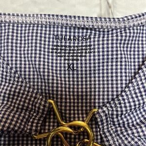 Revolve Tularosa Gingham Swimsuit Bathing Suit. Size XL. Removable Neck Tie. In EUC. Blue and white gingham plaid square picnic. Gold closures.