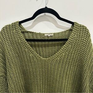 Revolve Tularosa Oversized Crocheted Olive Green V-Neck Sweater XS