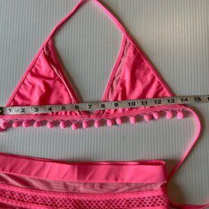 Revolve Tularosa Women's Hot Pink High Waist Pom Pom Mesh Nina Bikini Size L