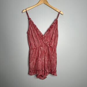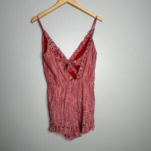 Revolve Tularosa Women's Red + White Amelia Tie Back V Neck Romper Size L