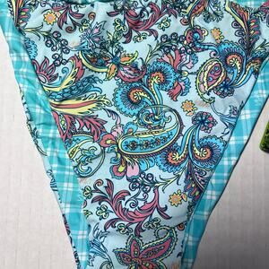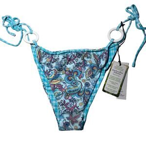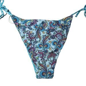 Revolve VDM Reversible Pastel Paisley/Mint Swimsuit String Bikini Bottom L/8 NWT