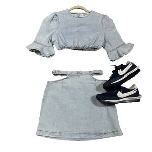 Revolve We Wore What Skirt Women M Denim Cut Out Mini Light Wash 90s Y2K Casual