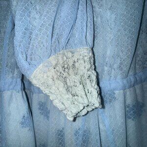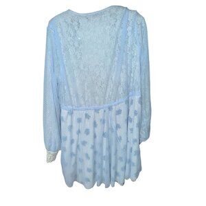 reversible robe, blue lace robe, luxury robe set, revolve robe xs, we are hah robe, long sleeve robe, lightweight robe, lace cuff robe, new with tags robe, french blue robe, revolve lounge set, adjustable waist robe, breathable fabric robe