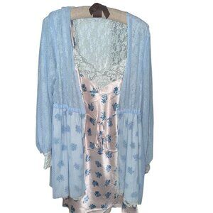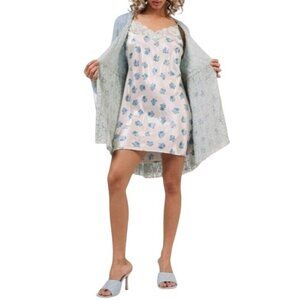 Revolve We are HAH XS Double Set Blue Lace Robe & Floral Slip Reversible NWT 428