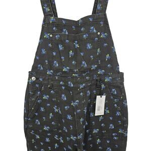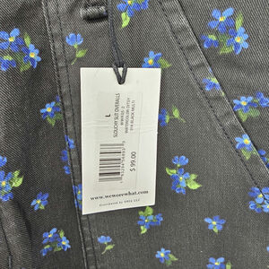 Revolve Weworewhat Womans size L Slouchy Denim Overall Ditzy Floral Black NEW