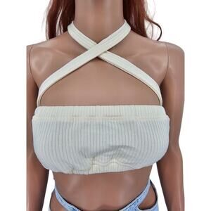 Revolve Weworewhat Womans size S Tie Halter Bra Top Wide Rib Ivory Bandeaux NEW