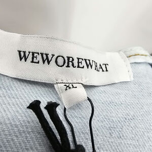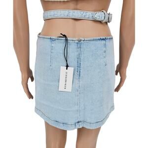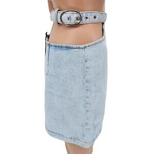 Revolve Weworewhat woman's size XL cut out denim jean skirt indigo comfort super light denim skirt light wash no distressing adjustable buckled waist belt waist cutout at hips and back zipper closure NEW with tags