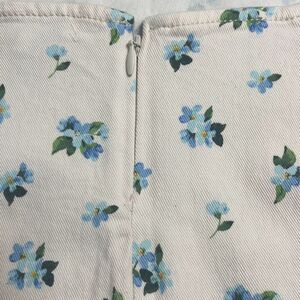 Weworewhat Womens Size Small Cut Out Mini Denim Skirt Ivory Floral Print NWT