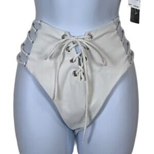 Revolve White Lace-up High Waisted Bikini Bottom MEDIUM Corset Lovewave $98 NEW