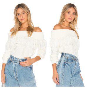 Revolve brand Endless Rose White Off Shoulder Fringe Cable Knit Sweater. Super cute. Excellent condition!