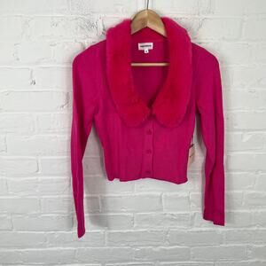 Revolve Women's Superdown Milana Faux Fur Cardigan Sweater Hot Pink Size S NWT