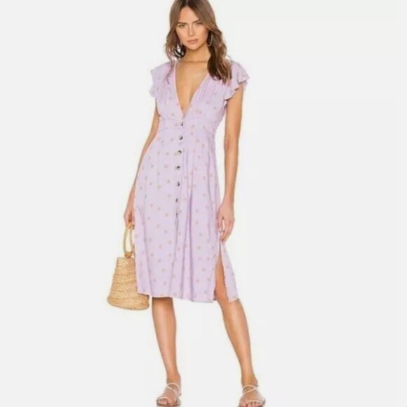 Revolve X L Space LIKE NEW pastel purple polka dot Jordan midi dress size M