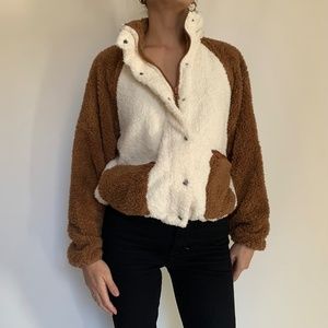 A lightweight touch of texture to add to your chilly-weather wardrobe. This Plush jacket is crafted from colorblock sherpa and has a relaxed fit for easy layering.