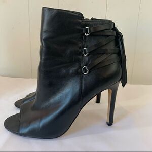 Revolve X Vince Camuto Black Leather Kimina Open Toe Heel Bootie Fringe 6.5M