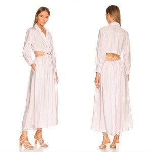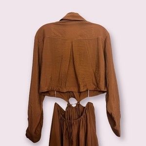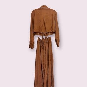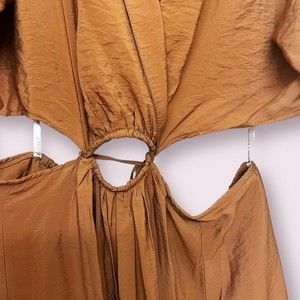 Revolve YFB Derby Dress Brown Cutout Maxi Collared Long Sleeve Womens Size Large